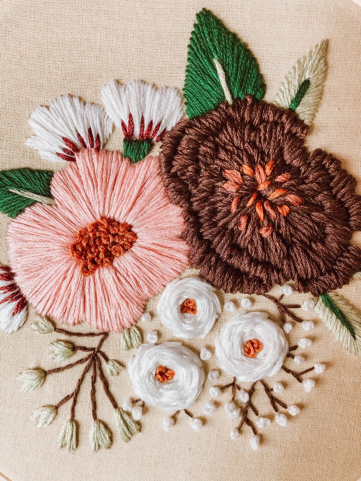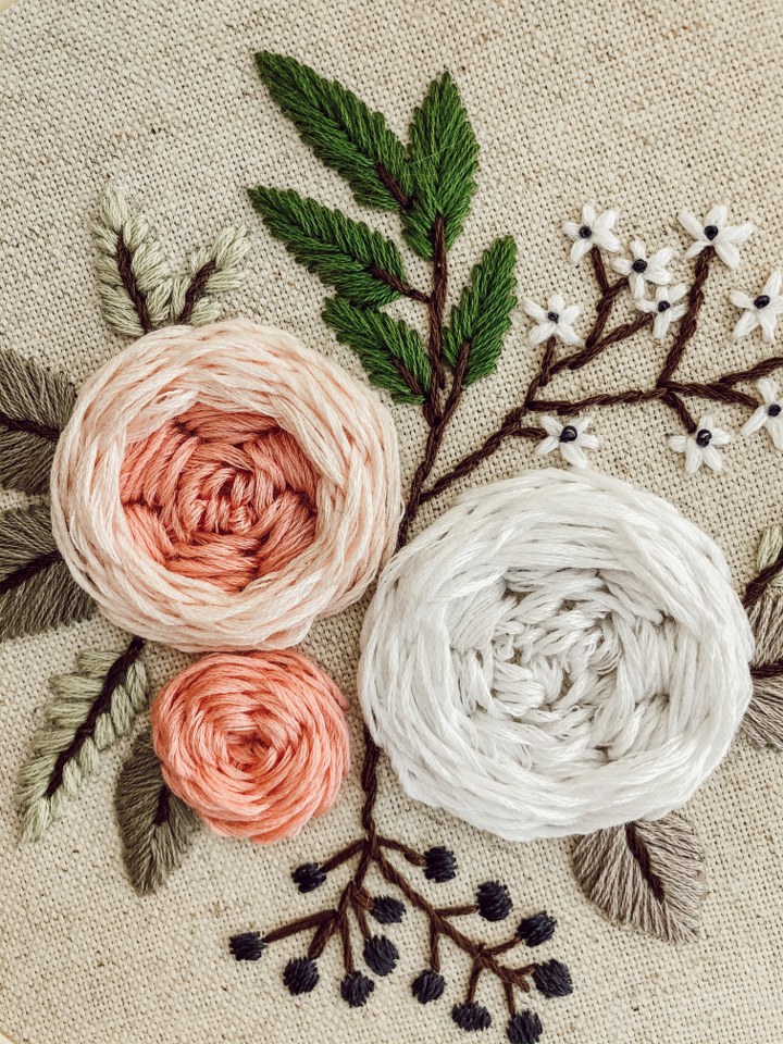 - Ață: Aici este univers pe care încă îl explorez. Am mers pentru primele broderii cu ața Mouline Madeira, cu 6 fire din bumbac, care pot fi folosite astfel sau separate în mai puține fire, în funcție de grosimea dorită pentru modelul realizat. O jurubiță are în medie 10 metri. Dacă vă gândiți ca mine, 10 m poate însemna mult. Da, dacă modelul e realizat din 2-3 fire. Însă 10 m poate însemna o singură floare cu volum, dacă folosești șase fire închise la dublu pentru o cusătură de tip spider web. În funcție de efectul dorit, mai există fire din mătase, simple sau strălucitoare, cu efect metalic etc.